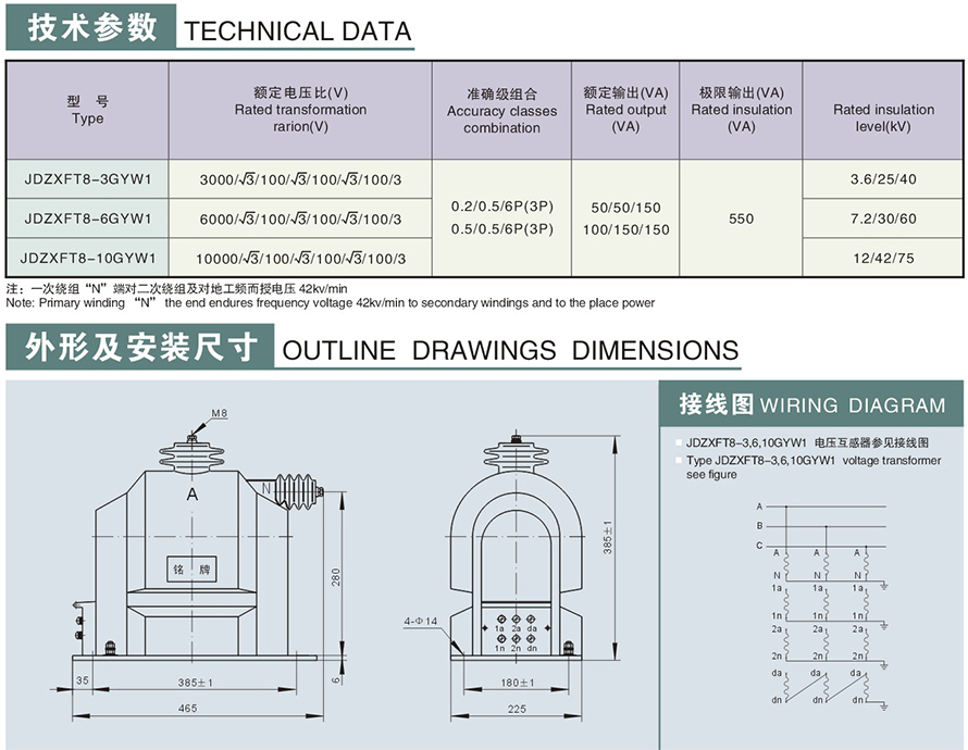 JDZXFT8-3,6,10GYW1型電壓互感器